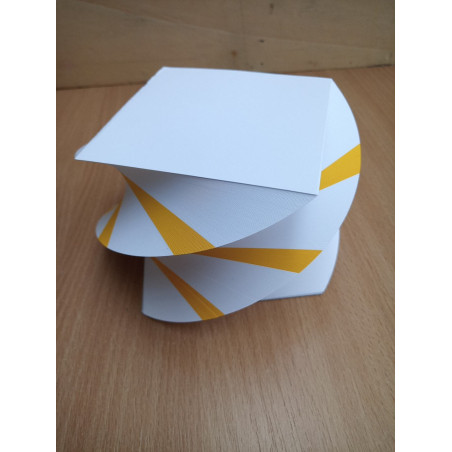 Block weiss mit gelben Zwischenblättern. Einzelblattgrösse 10 x 10 cm, Höhe 8.5 cm auf Karton geleimt. HANDARBEIT; jeder Block ist ein UNIKAT.