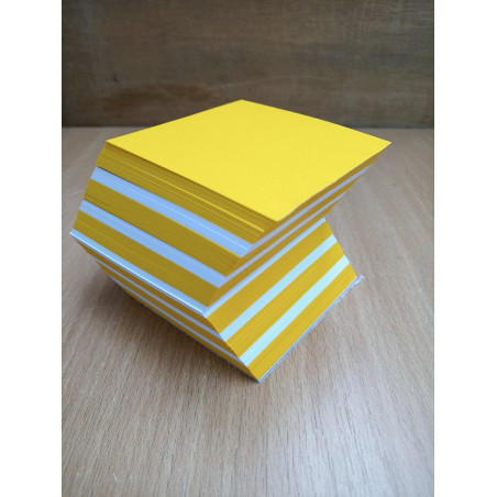 Notizzettelblock sonnenblumengelb mit weissen Zwischenblättern. Einzelblattgrösse 7 x 7 cm, Höhe 6 cm auf Karton geleimt. HANDARBEIT; jeder Block ist ein UNIKAT.